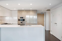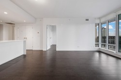 Introducing an exceptional residence at SOLO District 3, where refined design meets urban sophistication. This meticulously crafted 2 Bedroom, 2 Bathroom home offers expansive open concept living, highlighted by a thoughtfully curated interior and a highly desirable Southwest exposure. The gourmet kitchen is appointed with premium Bosch appliances, sleek cabinetry, and an elegant integrated design that anchors the generous living and dining space. Both bathrooms feature contemporary floating cabinet and modern finishes that elevate the home's overall aesthetic. The layout offers excellent bedroom separation, enhancing privacy and functionality. A standout feature is the oversized covered balcony.