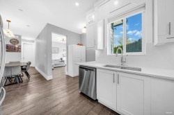 WELCOME TO DEER LAKE RESIDENCES – A boutique collection of custom-built 2-storey duplexes in the heart of Burnaby, nestled between Deer Lake and Burnaby Lake. Quiet inside—no traffic noise. This 5 bed, 4 bath home offers over 2,000 sqft of quality living with engineered hardwood, quartz counters, S/S appliances, radiant heat, Control4, H.E. furnace, wireless security, irrigation, fruit trees, and two balconies. Oversized windows bring in year-round light. **BONUS**: 1-bed ground-level nanny suite—great mortgage helper! Feels like a detached home with private outdoor space. Walk to Buckingham Elem, 3-min to Burnaby Central Sec.