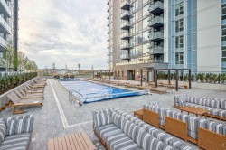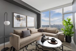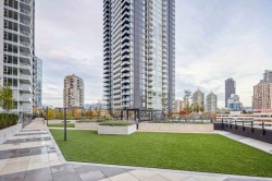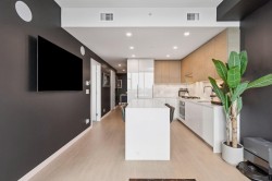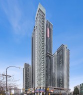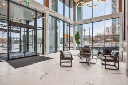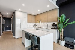 Welcome to Gilmore Place — where modern elegance meets resort style living. This junior 2-bed, 1-bath features soaring 9.5' ceilings, electric blinds, and a South facing open layout. The Italian gourmet kitchen with waterfall stone island perfect for entertaining, complemented by a premium appliance package, gas cooktop, A/C, upgraded flooring, and built-in speakers with integrated Sonos system. Your private balcony offers a peaceful retreat amid the city’s vibrance. Enjoy 75,000+ SF of world-class amenities - 24-hr concierge, fitness center, pools, golf simulator, bowling alley, karaoke lounge, steam & sauna rooms and more. Steps to Gilmore SkyTrain, Amazing Brentwood & T&T Supermarket. 1 EV parking + 1 storage included.