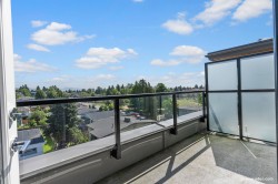 Step into PENTHOUSE living where stunning design meets everyday convenience. This exclusive TOP FLOOR penthouse boasts soaring 14-foot ceilings, streaming natural light, and breathtaking mountain views from sunrise to sunset. With 780 sq. ft. of thoughtfully crafted space, this 2-bedroom retreat offers an airy, open layout perfect for both relaxing and entertaining. A generous private outdoor area extends your living space even further—ideal for morning coffee, evening wine, or hosting friends. For those who crave urban excitement, New Westminster is just 5 minutes away. Families will appreciate the close proximity to elementary and high schools.