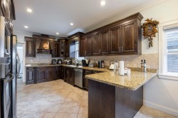 Beautiful Executive Home in Burnaby Lake. This 8 Bdrm, 8 Bath home is in a Quiet Neighborhood, yet very central & convenient location. Walk to Burnaby Park, transit and shopping w/quick easy access to BCIT & SFU. Media Room w/wet bar, a bachelor suite with kitchen and separate entry & 2 Bdrm with kitchen and separate entry in the bsmt. Main floor offers gourmet Kitchen w/additional wok kitchen & 2nd Master Bdrm w/full ensuite. 4 Brdms up all w/ensuites. Finished w/the finest details incl extensive mill work, Granite & Tile. Radiant heat and Heat Recovery System for energy savings, 50 year life tile roof all on large level fenced lot offering plenty of parking w/room for RV.