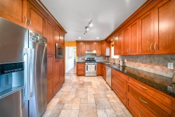 Welcome to this beautifully renovated house situated in a desirable community in Burnaby North. The house features 3 bedrooms and 3 bathrooms on the upper level. The master bedroom is very spacious with walk in closet. The kitchen is equipped with five burners gas stove and all S/S appliances. Two balconies ,one is covered and can easily fit regular size furniture. The lower level is open, airy ,bright with Euro style kitchen, granite counters, built in cabinetry and wine fridge. The 4th bedroom, bathroom, 2nd set of laundry is perfect for growing family. Air conditioning provides a comfortable life in summer.The detached garage boasts 11' ceiling for larger vehicle.The flat rectangle lot with back lane provides great potential for future development.