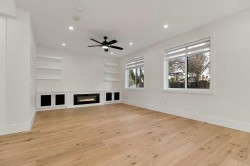 Corner Lot-Central Location- One block to Elementary School - 2 blocks to transit - walk to Robert Burnaby Park Open Entry with High Ceiling - Main Floor has guest room with en-suite + Another 2-piece washroom- hot water radiant heat- air condition -HRV- Security alarm system with monitor - main floor has lvg rm, kitchen, family rm, spice kitchen + laundry rm- Top floor has bedrooms with en-suites - main + top floors with engineered hardwood floors - top quality appliances - top quality throughout- experienced builder 2-5-10 year warranty - fully fenced - All Measurements are approx. taken from the plan - Must verify if deemed necessary- Phone to view.