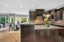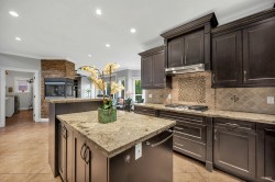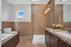 Rare to find 50 x 214 LOT, over 10,000 sqft. Well-Maintained Beautiful custom built home. Top level comes with 4 bedrooms & 3 bathrooms. Master bedroom features 2 way gas fireplace, bright bathroom with jacuzzi & standup shower. High ceilings in the entrance of main floor. Huge size living and dining room with high ceilings. Very functional kitchen with family room. Kitchen finished with rich brown cabinets, granite counter & stainless steel appliances. 5 years Wok kitchen as added feature. 2 more bedrooms & 1 full bathroom also on main floor. Basement has 2 separated one bedrooms suits great mortgage helper. Private park like back yard with detached garage. Lots of updates,Views of Grouse Mountain & Capital Hill from your master bedroom.