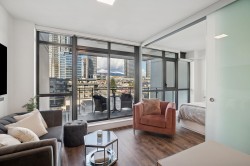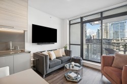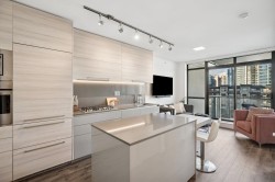 Exclusive luxury living in the heart of Brentwood. This beautifully designed home features a gourmet kitchen with imported Italian cabinetry, quartz countertops, and a premium full-sized Fulgor Milano appliance package with gas range. Enjoy air conditioning, 9’ ceilings, and floor-to-ceiling windows that open to an oversized private patio with stunning mountain views — perfect for morning coffee or evening BBQs. Thoughtfully laid out with a spacious bedroom and spa-inspired bath, this home feels larger than its size. Includes 1 parking & 1 storage. Amenities: concierge, fitness centre, yoga studio, lounge, games room, business centre & landscaped courtyard. Steps to Brentwood Mall, Whole Foods, Costco & SkyTrain.