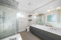Modern Luxury Home. This stunning 8-bedroom, 7-bathroom residence offers over 4,300 sq. ft. of elegant living space on an 8,300 sq. ft. lot. Thoughtfully designed with soaring ceilings, open-concept living, and a beautifully crafted kitchen featuring high-end appliances and a spice kitchen. Comfort meets convenience with A/C, radiant in-floor heating, built-in speakers, surveillance and security. Enjoy a huge walk-out to a fully fenced yard, perfect for entertaining. Includes a legal 2-bedroom suite as a mortgage helper. Walking distance to school and community centres. This one is a must see.