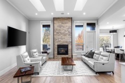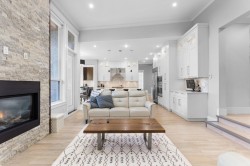 Luxury and craftsmanship meet on this rare 12275 sq ft lot with nearly 5000sqft of refined interiors.This stunning home features the highest quality finishings, including double height ceilings, bianco carrara marble counter tops,Kingsman fireplaces, Sub-Zero and Wolf appliances and walk in cooler within wok kitchen. Large entertaining deck and exquisite landscaping all enclosed with fencing for privacy. Upstairs offers 4 ensuite bedrooms, with a master featuring a grand spa bath, two way fireplace and private balcony. Concrete decks,full security and underground electrical highlight quality. Separate entry walkout basement. Prime setting near Market Crossing, parks, schools and SkyTrain. Rear lane access provides subdivision potential to build house or multiplex options under SSMUH rules.