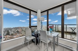 "Arcadia East" by noted Bosa – Stunning Penthouse with 270° Views! This exceptional penthouse offers unobstructed North, East, and South views with an ideal layout featuring 3 bedrooms, 2 baths, 2 balconies, a cozy fireplace, 1 locker and Two Parking Spots. The gourmet kitchen boasts granite countertops and high-end stainless steel appliances, while hardwood floors enhance the living room, dining area, and hallway. The building offers great amenities including a fitness center, yoga room, social lounge, and secure parkings. Located steps away from, restaurants, Save-On-Foods, Shoppers, Starbucks, BC Liquor, Community Center, Library, cafes, all level of banks and transit options and more. Conveniently located near Metrotown. Open House: Sat (Sep 27) 2:30-4pm