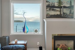 From the moment you enter this bright and spacious top floor condo, you’ll be drawn to the spectacular ocean and mountain views! Large windows fill the open-concept living area with natural light and frame incredible views. The cozy gas fireplace in the living room adds warmth and charm. This lovely unit with in-suite laundry, features 2 bedrooms and 2 bathrooms, including a generous primary suite complete with a sitting area and a 4-piece ensuite. With updates including new flooring, countertops, and custom electric blinds. Located just across from the Sea Walk, where you can enjoy morning strolls by the ocean. Just minutes away is the nearby Willow Point shopping area, offering great restaurants, pubs, and medical services. This well managed building provides secure underground parking, a storage room, workshop, secure entry, and elevator. 1 cat or 1 dog under 30 lbs allowed. This beautiful condo is move-in ready, start living the coastal lifestyle you’ve been dreaming of.
