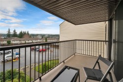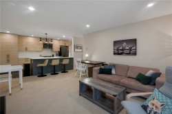 Stunning professional renovation completed on this condo, it is a MUST SEE!. You’ll love the beautiful modern new kitchen that features floor to ceiling cabinets, matte black appliances, and an oversized island with matching sink and faucet. Both bathrooms have been completely renovated, the former 2-piece ensuite has been expanded into a second full bathroom with walk-in shower, the main bath has been completely redone. Enjoy new luxury vinyl tile, carpet, baseboards, paint, baseboard heaters, lighting, and a flat finish ceiling in the main living area. This unit offers a spacious in suite storage and a covered south facing deck with beautiful mountain views. Ideally located in a quiet, central area within walking distance to shops and forested trails. Laundry on the same floor. Pet friendly, 1 cat or small dog and no age restrictions