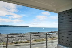 Built in 2023, this almost new 1,229 sqft condo offers modern living with breathtaking ocean views. Featuring 2 bedrooms plus a den, the open concept design includes laminate flooring, quartz countertops, and a sleek kitchen perfect for entertaining. The primary suite boasts a deluxe ensuite with double sinks, walk-in tiled shower, heated tile flooring, and a spacious walk-in closet. Enjoy year round comfort with air conditioning, electric blinds (with blackout in bedrooms), and a private deck for relaxing. Additional highlights include an exclusive EV charger, sprinkler system, and home warranty coverage. Pets are permitted (with size restrictions), all ages welcome, and best of all—no GST. This is an outstanding opportunity to own a stylish, ocean view, move-in-ready home with every modern convenience.