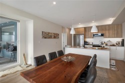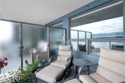 This Omnia unit blends comfort and style with ocean and nature views—and it’s ready to move in. The spacious primary bedroom offers a walk-in closet and a spa-inspired ensuite featuring heated floor tile, a double vanity, and a herringbone-tiled shower. A second bedroom overlooks peaceful green space, paired with a full bath and relaxing tub—ideal for family or guests. A bright den makes a perfect office, reading nook, or creative space.Everyday conveniences include in-unit laundry, undercover parking, an EV charger, and a pet- and rental-friendly building. Stay comfortable year-round with a heat pump for heating and cooling. From the front deck, enjoy sweeping ocean views and passing cruise ships; from the back, take in the quiet rhythm of nature. Whether a year-round retreat or summer escape, this move-in-ready home is a rare blend of luxury, privacy, and West Coast living.