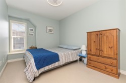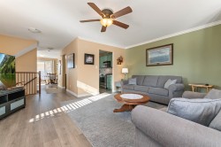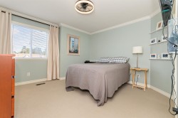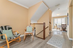 Step into a wonderful, bright and fresh END UNIT home on a quiet Crescent! Central A/C, abundance of southern daylight and awesome mountain views from your balcony (front row seats to the airshow!) Newer flooring throughout main floor! Kitchen equipped w/stainless steel appliances & fresh paint. Breakfast bar flows into the large dining area on one side with the spacious living room and cozy nat gas fireplace welcoming you from the other. Excellent floor plan! Three large bedrooms up, including ensuite, walk-in closet, family bathroom and laundry room. The basement offers up a fourth bedroom or family room / den with separate entrance & access to the FULLY FENCED YARD! Plus there's a 2-pce powder room! Double garage, full-size driveway, handy street parking and 2 furry friends allowed!