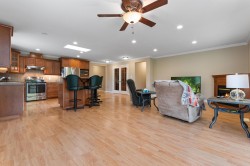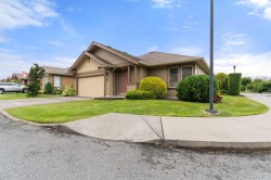 Located in a secure gated community, this beautifully maintained detached rancher features a larger floor plan with an open-concept kitchen, oversized island, and a spacious living and dining area. The primary bedroom includes a three-piece ensuite and walk-in closet, while the second bedroom is bright and generously sized. A custom office/den offers built-in cabinetry and a functional workspace . Enjoy outdoor living with a private covered patio and a powered awning for extra shade. The double garage provides ample storage, and the driveway fits a full-size truck. Ideally situated near the clubhouse, this home offers comfort, convenience, and a great community atmosphere.