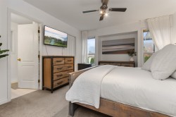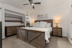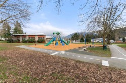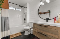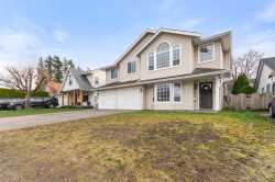 Tucked into one of Sardis' most coveted pockets, steps from the Sports Complex, Library, and a sprawling neighbourhood park, this detached home delivers the rare combination of space, updates, and location. Upstairs, three bedrooms include a generous primary with walk-in closet and refreshed ensuite + updated main bath. The kitchen has been modernized with quartz countertops and stainless steel appliances, flowing seamlessly into a bright, updated living room. Step outside to a covered deck framing mountain views, with a south-facing backyard that soaks in natural light on a large, flat lot. The lower level adds serious flexibility: a self-contained in-law suite with its own entrance, plus a spacious den in the main living space ready for your ideas! All with an updated furnace & A/C!