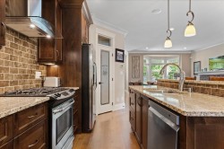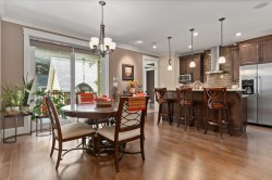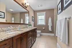 Don't miss out on this award winning Brownstones on the Blvd rowhome - NO STRATA!! 2240 sqft 2 bed/3 bath + den, open great room & finished basement that has suite potential!! One of the best spots for your new life. Central AC, hardwood flooring, granite countertops, island w/raised bar top, 42" upper kitchen cabinets, soft-close drawers, beautiful s/s appliances, pantry, primary with w/in closet, huge w/i shower, laundry up, crown moldings, 2" composite blinds, screens, designer lighting, 9' ceilings, glass transoms, patios and decks (one partially covered), detached garage with lanes access & an extra parking spot + so much more. All of this in the heart of Garrison Crossing, steps from shopping, restaurants, parks, schools and the Vedder River. Make it yours today.
