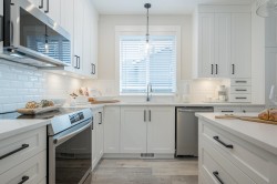 Welcome to Malloway Village! This Dogwood home extends to two levels with a stunning bright open living area, spacious designer kitchen with high end appliances and a large multi-use rec room upstairs as well as an extra bedroom and a full bath. Meticulously manicured landscaping, double garage, double side by side driveway, fenced backyard (pet friendly), beautiful covered patio spaces and state of the art geothermal forced air heating and air conditioning. GST inclusive!