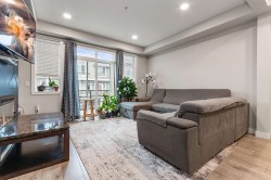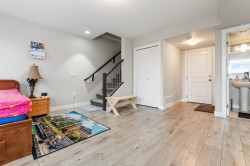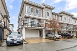 This END Unit townhome boasts over 1735sq ft spread out over 3 levels. Features a DOUBLE garage with visitor spot right next to it, park up to 4 vehicles. A fenced backyard is a great space for your furry friends. The lower level includes a large Rec/Media room or can be used as another bedroom with two pc washroom. The Main offers an open floor plan with large kitchen to Dining room and a warm and welcoming Living room with Electric fireplace for cold days and a slider opening up to the large Sundeck that's perfect for BBQ weather. Upstairs you find the Primary with large walk in closet and spa like Ensuite Bathroom, the main bathroom and Laundry with two good sized rooms. High ceilings throughout and located close to Hwy 1, shopping, and schools.