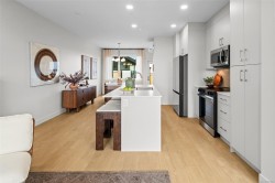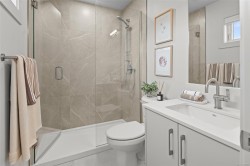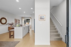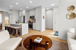 Exceptional opportunity to own a fully furnished, custom-built Show Home where designer finishes & meticulous craftsmanship harmonize across 3 refined levels of West Coast living. Luminous open-concept main floor captivates with 9-ft ceilings, expansive windows, & an elegant electric fireplace, while the chef's kitchen showcases 42-inch cabinetry, quartz countertops, artisan tile backsplash, & modern appliances. Upstairs, dramatic vaulted ceilings set the tone for a spa-inspired primary ensuite with dual undermount sinks and a hand-tiled walk-in shower, plus two additional well-appointed bedrooms. A self-contained one-bedroom suite, single-car garage, two parking pads, and private fenced backyard complete this distinguished offering — ideally situated moments from pristine beaches, nature parks, scenic trails, and the wealth of amenities at the Commons Retail Village. Visit the HomeStore at 394 Tradewinds Ave, open Sat–Thurs, 12–4 pm. All measurements approximate. Price plus GST. Est.