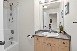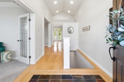 A dramatic entry with soaring ceilings sets the tone in this beautifully designed family home. Created for effortless main-level living, the spacious primary suite is thoughtfully positioned on the main floor with patio access, a walk-in closet, and a generous ensuite with soaker tub and separate shower. Separate living and dining rooms with gas fireplaces provide elegant space to host, while a powder room and laundry add everyday convenience. The kitchen and family room flow seamlessly to a balcony nestled amongst trees with gorgeous ocean and mountain views, extending your living outdoors. Downstairs offers two bedrooms, full bath, private patio, and a large rec room ideal for teens or guests. A self-contained legal suite with its own entrance and patio adds valuable income potential. Double car garage, tonnes of storage throughout, and parking for everyone! Surrounded by beaches, parks, trails, schools, and amenities, this Royal Bay home delivers style, flexibility, and location.