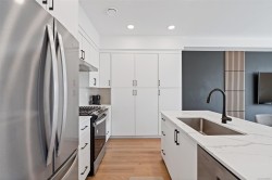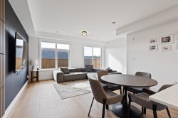 Beautifully appointed two-level townhome in Royal Bay. 3 bedrooms 3 bathrooms, stylish and spacious home delivers a welcoming feel with the convenience of strata living. 9’ ceilings-bright and airy open-concept layout designed for comfortable everyday living and effortless entertaining. Chef-inspired kitchen features quartz countertops throughout. A gas stove and sleek stainless appliances, connecting the dining and living areas for a modern feel. Upstairs an impressive primary with views, a large walk-in closet and a spa-inspired 5-piece ensuite. Two additional bedrooms, laundry and a full bathroom complete the upper level. Low-maintenance outdoor living with a landscaped yard cared for by the strata. A Driveway plus a garage provide ample parking and storage — a rare bonus in townhome living. Perfectly suited for downsizers or families-just steps to the ocean, the up-and-coming Royal Bay Shopping Village, and all levels of schools and parks. Pet-friendly strata.
