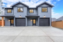 Discover this beautiful, brand new Duplex completed in December, 2025. It offers three-bedrooms & three-bathrooms in the sought-after Point Homes area in Comox. With 1,552 sq. ft., it features a modern open floor plan, stainless steel appliances, and a cozy, oversized electric fireplace. The primary bedroom offers an ensuite with a tiled shower and a walk-in closet. Enjoy comfort year-round with an efficient heat pump with forced air furnace saving on energy costs in the winter and air conditioning in the summer months. There is a single-car garage and a crawl space for added storage. The property is fully fenced for pets and children and is located just minutes from Point Homes Beach. Situated just around the corner with nature abound in the popular North East Woods/Lazo Marsh. Located in a peaceful, quiet neighborhood & also within walking distance to all levels of schools and surrounded by nature and walking trails. Only minutes from all amenities and services of downtown Comox.