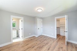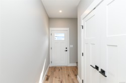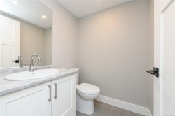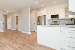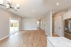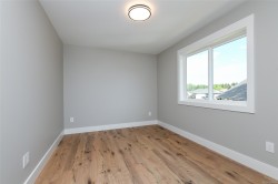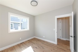 Modern & Energy-Efficient New Half Duplex. Discover this newly built 4-bedroom, 2.5 -bathroom half duplex, designed for comfort, efficiency, and modern living. Featuring an open-concept layout, this home boasts a bright and spacious living area that flows seamlessly into a contemporary kitchen—perfect for entertaining or everyday living. Heat pump with A/C and natural gas furnace w/HVAC helps reduce utility costs while keeping you comfortable year-round. Quiet enjoyment of your space as the shared wall is between the garages. Step outside to enjoy the large patio, gas BBQ hookup and fenced rear yard, complete with an irrigation system to keep your outdoor space lush and green with ease. Convenience is key with an attached parking garage, plus 2 driveway spaces. Located close to shopping, amenities & scenic walking trails. This home offers the perfect blend of tranquility and accessibility. Purchase price plus GST. Appliances & closet organizers incl. Possession possible in July 2025