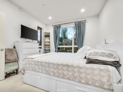 2 PARKING STALLS, Air conditioning & Storage locker! Welcome to THE OAKS, highly sought-after development offering modern design, comfort, & unbeatable convenience. This beautifully appointed 2-bedroom, 2-bathroom ground-floor unit features a spacious open-concept layout w/stainless steel appliances, a gas range, & a bright, contemporary kitchen ideal for both everyday living & entertaining. Step outside to private patio w/easy access to courtyards, perfect for relaxing or hosting guests. Enjoy an impressive collection of amenities including a fitness centre, games room, theatre room, party room, co-working space, and a children’s playground. Conveniently located close to SkyTrain, shopping, restaurants, schools, & parks, This combines modern living with easy access to everything you need.