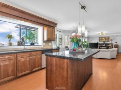 Welcome to this charming Tudor-style home with stunning south-facing views of the Fraser River! This 4700 sq ft home offers both elegance and functionality, featuring a grand foyer with a spiral staircase. Upstairs, you'll find 4 spacious bedrooms, including a master suite with a cozy reading area and fireplace. The kitchenfeature granite counters with stainless steel appliances opens to a large family room. The walk-out basement boasts a 2-bedroom suite with separate entry, plus a 1-bedroom suite, perfect for mortgage helpers. With a beautifully landscaped garden, it's ideal for entertaining. Close to shopping, golf, and restaurants, skytrain and highway!