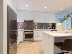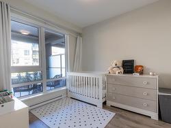 All the best advantages of a townhouse in this less than 1 yr old condo complex in Burquitlam. Walk-up stairs to a large covered patio. Bright & sunny open living room, dining room & kitchen, high end stainless steel appliances & gas range. Primary bedroom is large & bright, ample room for computer station, 4-piece ensuite bathroom with dual sinks, walk-in closet. Large 2nd bedroom away from primary bedroom for privacy. In suite laundry. Laminate/Tile flooring for cleanliness. 2 under ground parking stalls with EV installed charging & large locker near by. Skytrain, shops & eateries a short walk away.