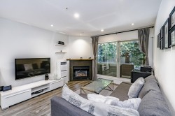 RENOVATED bright suite with private patio area in fantastic location - WALK TO EVERYTHING! This 1 bedroom condo with large bedroom, renovated bathrm with heated floors & walk in shower! Large living rm with corner gas fireplace & sliders to the private patio with beautiful greenery. GORGEOUS NEW kitchen with breakfast bar, quartz counters, newer stainless steel appliances + new flooring throughout! Work from the home office nook + in suite laundry/storage area plus additional storage locker. Blocks to the Evergreen Line, Weestcoast Expresss, Coquitlam Centre Mall, Aquatic Centre, senior centre, Evergreen Cultural centre, Lafarge lake, Coquitlam river trails, all levels of schools including Douglas College!