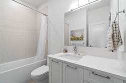 Stylish 4-year-old home with 1,415 sq. ft. open-concept living, 9-ft ceilings, and large windows for natural light. The chef’s kitchen boasts quartz counters, a gas range, and custom storage. Enjoy a sunny, fenced backyard backing onto a greenbelt; perfect for peaceful mornings or BBQs. Upstairs are 3 bedrooms, including a vaulted primary suite with walk-in closet and spa-like ensuite. The two other bedrooms are versatile for guests, kids, or a home office. The 530 sq. ft. double garage features Polyaspartic floors, Husky slat organization, EV charging readiness, gas BBQ hookup, and smart upgrades. Set in a quiet, family-friendly community near parks, trails, top schools, and shopping - and still under new home warranty. This home blends modern elegance with everyday convenience.