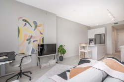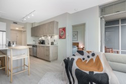 A rare opportunity to own a pristine & immaculately maintained view suite offering panoramic city & mountain views. A bright & airy feel. 2 Beds, 1 bath. The largest parking space you'll ever see; near the entry door + storage locker. Luxurious & modern finishes featuring newly updated light oak colored flooring. SS appliances, undermount mood lighting & sleek cabinetry. Building amenities: gym, lounge & outdoor BBQ. Conveniently located next to shopping, transit, entertainment & minutes to SFU. Walk to Skytrain & Lougheed Town Centre. EV Charging Stations. Secure visitor parking. Not to be missed, a terrific investment or peaceful place to call home.