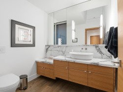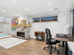 Welcome to your "new" home!'New' also means stripped to the studs and rebuilt from the ground up, leaving no stones unturned. This home offers a warm feel from the time you open the door, with engineered hardwood floors to rich oak doors and cabinetry throughout. Glazing stretched from floors to ceiling - taking in the greenbelt, natural light. Primary bdrm, walk through oak closet to a huge ensuite bathroom. Secondary bedroom on main for small ones or an office. Lower level offers future potential for a one bedroom suit or keep to yourself, all fully finished. New heating, electrical, plumbing drywall,perimeter drains, rain screened stucco, roof, A/C! on and on it goes. Wolf, Sub Zero Appliances, Navien on demand Ht/Wt, 2 new gas F/P's. This is a must see to explore all the/your options.