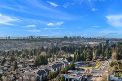 Welcome to West by Beedie in Austin Heights—where modern living meets everyday ease. This beautiful home offers a large private patio with sweeping southeast to west views of the Fraser River, Port Mann Bridge, Mount Baker, and the city skyline. Enjoy floor-to-ceiling windows, sleek finishes, air conditioning, and premium appliances. Amenities include a gym, sports court, party room, guest suite, and outdoor lounge with BBQs. Connected to Safeway, shops, and cafes, plus includes 1 parking and 1 storage locker.