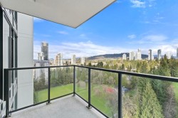 AIR CONDITIONED excellent condition JUNIOR 2 BED with breathtaking, unobstructed mountain views overlooking the prestigious Vancouver Golf Club, quality built by Anthem. Features functional layout, 9’ ceilings, hardwood floors throughout. Bedroom offers integrated millwork closet, and spacious den is ideal for extra bedroom, nursery, or home office. Gourmet kitchen includes Bosch S/S appliances, quartz countertops, full-height pull-out pantry, and ample storage space. Added benefit of low utility costs and under 2-5-10 Warranty. Hotel-styled amenities include gym, sauna, lounge with kitchen, courtyard BBQ area, workshop, playground, guest suite, car wash, bike repair, and 24/7 concierge. Conveniently walk to Lougheed Town Centre, SkyTrain, groceries, restaurants, schools, parks, and more!