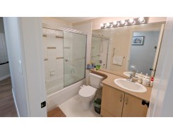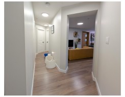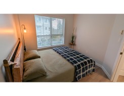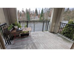 BEAUTIFUL Bright CORNER UNIT South facing, Windows everywhere. Fully renovated with new appliances fresh paint, LED lighting and flooring. This 3 bedroom, 2 bath, 2 parking spots 2 storage lockers unit is perfect for a family. Enjoy cooking at the chef’s kitchen with new Samsung appliances and Fotile hood fan. The Master retreat features a walk-in closet, soaker-tub, dual sinks and will fit a king bed. The other 2 bedrooms are at the opposite side of the unit and away from the master bedroom. The living and dining rooms are spacious enough for house size furniture with access to a covered exterior 12 x 8 ft deck. Fantastic complex with its own outdoor pool, exercise room and meeting rooms. Nearby is the Evergreen Line, Westcoast Express, shopping & restaurants. Act fast before its gone!