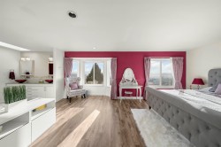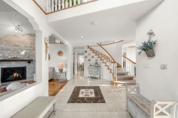 Panoramic views, natural light & luxurious design define this exceptional Coquitlam home. Offering nearly 4,900 sqft of refined living space, it welcomes you with a grand foyer featuring custom tile, vaulted ceilings, elegant formal dining & a bright great room with a gas fireplace, perfect for entertaining. Upstairs features 4 bedrooms, including an impressive primary suite spanning the south side with sweeping views, jetted tub, walk in closet & spa inspired shower. The lower level offers a spacious games room, sauna & a mortgage helper. Outdoors, enjoy a private backyard oasis with stone BBQ, oversized covered swim spa & tranquil zen patio with gazebos. Located in one of Coquitlam’s most sought after neighbourhoods close to the HWY, this home delivers comfort, style & elevated living.