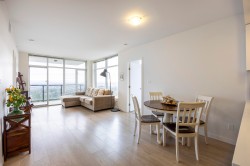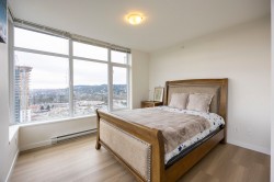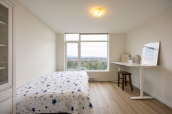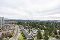 Westwood built by ONNI, a spacious South East facing corner unit with 2 beds + den on the 27th floor, with unobstructed panoramic view of city and mountains throughout the unit. It offers 959 sqft living space. Open concept gourmet kitchen contains gas stove and s/s appliances. Primary bedroom has a spa ensuite bathroom. A den is delighted for addition living or office space. The building offers a wide range of amenities such as concierge, outdoor pool, hot tub, sauna, fitness centre, guest suite and etc. Location is central-orientated, walking distance to Henderson Mall, Lincoln Center, Coquitlam Centre, SkyTrain and public transits, library, schools, restaurants, Lafarge Lake and etc., This unit comes with 1 parking and 1 locker. It is an amazing deal, don't miss out. OH: Feb14&15 2-4pm