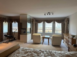 A special custom built (2x6"const) dream home. Located in a quiet C-D-S next to greenbelt. One of the largest lot in River Hts with 180 degree panoramic view on 3 lvls. The main floor boasts an open-concept layout with a grand living room, formal dining area, a den, a gourmet kitchen and a cozy family room. Upstairs 5 large bedrooms, including an enormous Primary master suite features a gas fireplace , a walk-in closet and a custom-designed dressing area plus a luxurious ensuite bathroom. Full walk-out bsmt w/kit. Must see !