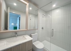 Jinju - Anthem's newest development in Coquitlam West steps from the Burquitlam station. This 2 bedroom 2 bathroom home offers quality living with its gourmet kitchen, functional pantry, gas burner designer stove, and more. Practical floorplan with bedrooms on opposite sides, as well as central AC for those hot summer and cold winter months! Your next home is just steps away from parks, shopping, restaurants, and transit. 25000 sf amenities include: concierge, gym, yoga room, spa, sauna, lounge, co-working space/study, guest suite, games room. 1 huge parking stall & 1 locker.