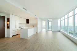 Experience BOFFO's 3 Bed + flex floor plan. Nine foot ceilings and South West views framed by over 37 feet of windows. A/C and Wifi controlled thermostat. Custom entry niche with charging station. Chef's kitchen features 6'island with quartz waterfall edge, full-size 30" integrated Fisher & Paykel/Bosch appliance package with 5-burner gas cooktop. Wide-plank European flooring. Master retreat features built-in wardrobe, frameless glass shower and heated tile floors. Elevate your lifestyle with over 13,000 square feet of indoor amenities including rooftop lounge and fitness centre PLUS and OUTDOOR swimming pool, games room and canopy-covered dining. Walking distance to Skytrain Station. Come and check out the views! Move in ready! Best deal in the entire building!Open Sunday 2-4pm