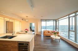Welcome to M3 by Cressey, Coquitlam's tallest and most sought-after tower. This 2bed/2bath home also includes a spacious den with a large window, easily used as a third bedroom. The southwest-facing corner layout, 9' ceilings, floor-to-ceiling windows, air conditioning, and an efficient floorplan designed for modern living. The signature CresseyKitchen is equipped with Blomberg & Fulgor Milano appliances, double refrigerators, and a wine cooler. Enjoy sweeping, unobstructed views from every room. The primary suite features a spa-inspired ensuite with radiant heated flooring. Exclusive access to the Summit Club on the 47th & 48th floors, offering 9,000 SF of world-class amenities including gym, lounge and entertainment spaces. Just steps to Coquitlam Centre, SkyTrain, Lafarge Lake and more.