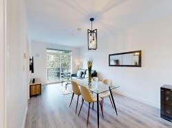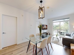 Welcome to Vista by Dolomiti, a Georgie Award-winner of the Best Multi-Family Low Rise! Bright & QUIET condo facing South East. The Owner occupied, never rented, unit features, 9 foot ceilings, open flex space, Stainless Steel appliances, a big open L shaped kitchen with a waterfall island, oversized sinks & LOTS of storage. Enjoy plenty of natural light, a secluded balcony with VIEWS on the quiet side of the building & lots of privacy on 5th floor. Kitchen is off a large Flex area for an office, entertainment space, etc. Building Amenities includes: Gym, Playground, Rooftop Deck & Gathering space, BBQ's, gardens. Steps to Burquitlam SkyTrain (but you can't hear it), shopping, restaurants, schools, trails & parks. Open House: Sat, Dec 20, 12-1pm.