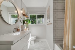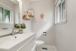 Opportunity knocks! Chineside home w/MORTGAGE HELPER and every kids DREAM YARD! This amazing family home is COMPLETELY RENOVATED throughout with too many upgrades to mention. Metal roof in 2012(lifetime warranty), new GAS RANGE, heated Kitchen floors upstairs and downstairs, wide plank white oak flooring, GAS hookup for BBQ on a sprawling freshly stained deck, Level 2 EV Charger in your double garage, NEST thermostat, voice activated lighting and more...check out the photos! Bonus flex space in the back yard (can be used as an office, media room, PILATES studio or detached guest space. 1 Bedroom Basement suite w/separate entrance & Gas Range. Short walk to Baker Elementary, Hillcrest Middle School & Dr. Charles Best Secondary. This is a must see!