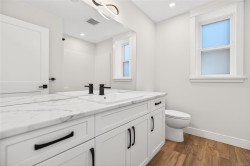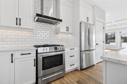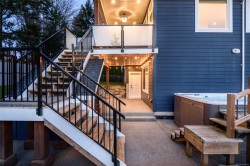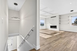Built in 2021 by Cameron Construction, this stunning 5 bedroom, 3 full bath home on Valley View Drive offers incredible views of the Beauford Mountains and shows like brand new—without the GST. Upstairs features a bright, open-concept living space with a decorative pantry ceiling, cozy gas fireplace, and seamless flow between the living, dining, and kitchen areas overlooking the backyard. Enjoy gorgeous views from two balconies, plus three bedrooms and two full baths on the main level. Downstairs offers two additional bedrooms, a laundry room, and a spacious rec/family room with gas rough-in for a future fireplace and full wet bar—perfect for entertaining. The fully fenced yard backs onto Valley View Elementary's greenbelt and includes irrigation front and back, a newly built sauna (awaiting electrical), insulated shed ideal for a studio, and kids’ playhouse. The garage is a handyman’s dream with 50-amp plugs and EV charger rough-in. A turnkey home loaded with extras!