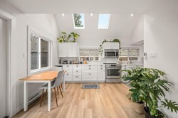 Extensively updated home with a legal suite in an unbeatable location. This bright and modern property offers a 2-bed/1-bath main level plus a 1-bed/1-bath upper suite with separate exterior access, private balcony with ocean views and separate hydro. The flexible layout is well-suited for extended family, guests, or supplemental income. Updates completed in recent years include roof, updated windows, skylights, kitchen with quartz countertops, bathrooms, flooring, insulation and more. Step through French doors to your deck overlooking a fully fenced, landscaped yard with fruit trees and garden beds. Millard Park is across the street, with walking trails, nearby amenities, and ocean access for kayaking or paddleboarding steps away. Spacious driveway, garage and workshop offer storage for your toys and space for hobbies. Private, versatile and move-in ready, this property offers flexibility for multigenerational living or rental income in this highly sought-after oceanside location.