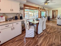 Situated just on the edge of the city limits with stunning mountain views, this rare 0.26-acre property offers the perfect blend of space, comfort, and convenience. The 1,420 sq. ft. bungalow has been thoughtfully maintained and upgraded, featuring three spacious bedrooms or 2 + den, two beautifully updated bathrooms, and the added convenience of main floor laundry with front-loading machines. The bright kitchen and dining area flow seamlessly in an open floor plan, while the living room showcases hardwood floors and a charming wood brick fireplace as a cozy focal point. A side enclosed porch leads to a partial basement, providing abundant storage and direct access to both the single carport and the backyard. Practical updates include a high-efficiency furnace installed in 2022, new electrical service, a hot water heater replaced in 2018, and updated vinyl windows completed in 2010/11. Connected to city sewer just three years ago and supplied with city water, this home is move-in ready. The beautifully landscaped yard is complete with a gazebo, garden beds, and generous RV parking, making it a true gem for those seeking both lifestyle and location.