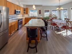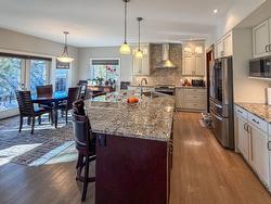 Step inside and fall in love with the bright, open design featuring vaulted ceilings, expansive windows, and a striking floor-to-ceiling fireplace anchoring the living room & family room. The dream kitchen showcases granite countertops, stainless steel appliances, abundant cabinetry, a large island, and walk-in pantry, seamlessly flowing to the dining area with access to the covered deck—perfect for enjoying the breathtaking views. The main floor primary retreat also offers direct deck access, a spacious walk-in closet, and a luxurious 5-piece ensuite complete with double sinks, soaker tub & tiled shower. A second bedroom/den, main floor laundry, and a large mudroom leading to the oversized double garage add everyday convenience.