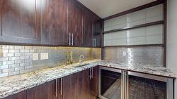 Welcome to your dream home! This centrally located residence offers the perfect blend of timeless elegance, modern upgrades, and incredible outdoor living on a rare .317-acre oasis. Fully enclosed with new aluminum fencing and an electric gate, the property boasts beautifully landscaped grounds complete with new raised garden beds, multiple gazebos, and a private hot tub nestled beneath its own gazebo with aluminum privacy panels—your own serene sanctuary. Step inside the freshly painted entry-level. Perfect as an in-law suite or guest retreat, featuring a spacious rec room with a stone feature wall, electric fireplace, wet bar w/ granite countertops, wine cooler, & beverage fridge. A 3-piece bathroom with walk-in shower and private bedroom complete this level. Upstairs, the heart of the home unfolds. A bright, open living space, cozy gas fireplace, walls of windows w/ sliding doors that open to the newly covered wrap-around deck w/ gas BBQ hook-up. A chef-inspired kitchen, featuring granite countertops, large breakfast bar, & high-end KitchenAid appliances. This level also includes a main bath with a soaker tub, two additional bedrooms, and a gorgeous primary suite with walk-in closet and ensuite. Recent upgrades include: roof, windows, fencing, gazebos, hot water tank, interior paint,& light fixtures. This is more than just a home, it's a lifestyle. It has unique charm, thoughtful updates, and room to grow. This stunning Spanish-style gem is ready to welcome your family.
